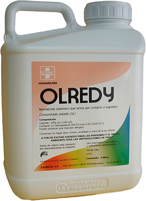 OLREDY es un potente nematicida sistémico, líquido y soluble en agua. Actúa por contacto e ingestión produciendo la parálisis y muerte de los